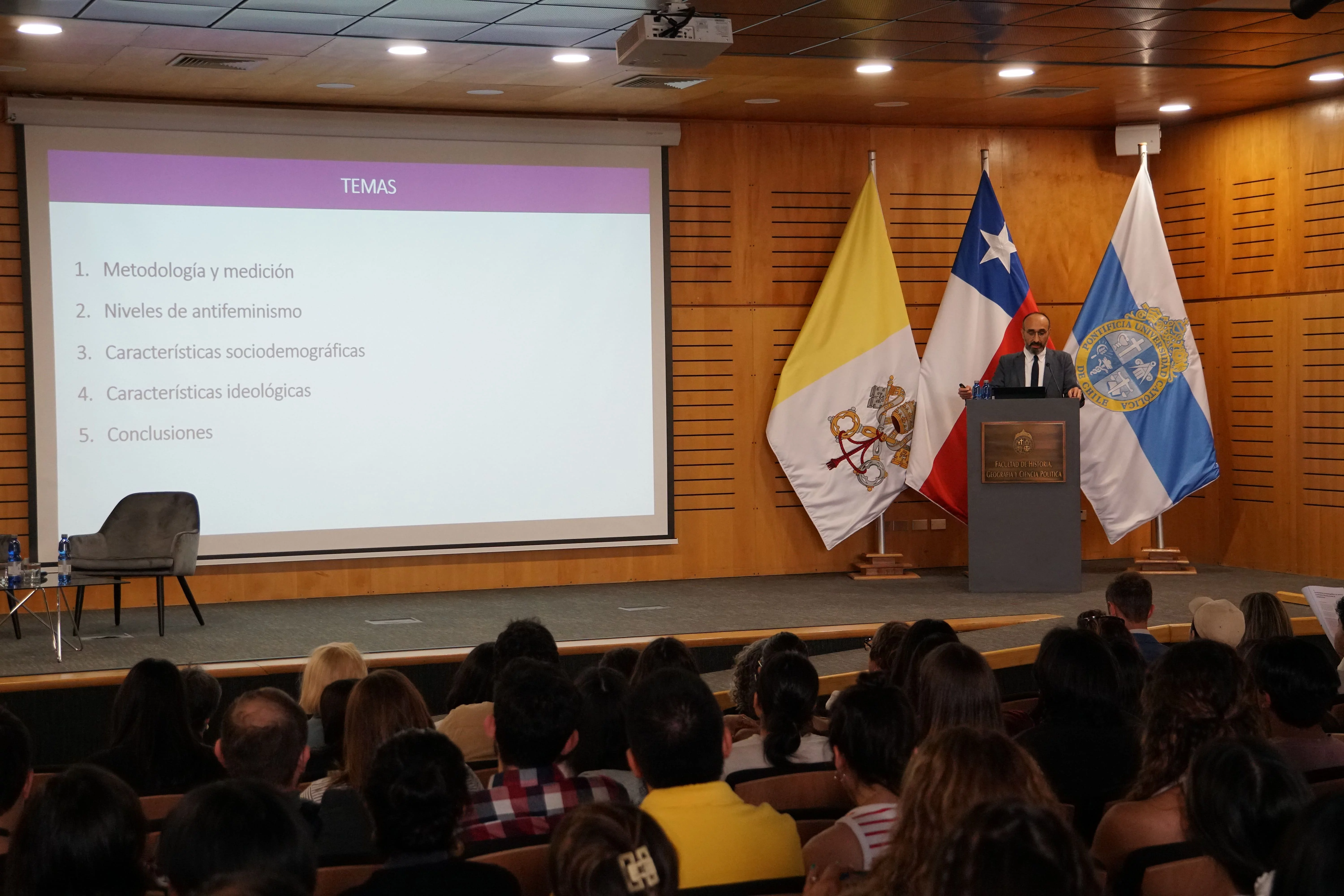 News Actividades Noticias América Latina frente al feminismo: Estudio revela tensiones y posturas en la región 10.04.2025 Presentación estudio sobre actitudes antifeministas en América Latina En una actividad organizada conjuntamente con la Universidad Católica, se presentó el estudio “Actitudes antifeministas en América Latina”, que examina la prevalencia y las características del antifeminismo en cinco países de la región: Argentina, Brasil, Chile, El Salvador y México. El estudio fue expuesto por el profesor Cristóbal Rovira y comentado por la politóloga y ex Ministra del Interior y Seguridad Pública, Carolina Tohá, quien también se desempeña como precandidata presidencial. La conversación fue moderada por la periodista Paula Escobar y transmitida en vivo a través del canal de YouTube de la UC. El análisis enmarca el crecimiento del antifeminismo en un contexto regional marcado por el ascenso de fuerzas de ultraderecha y su vinculación con redes internacionales. Estas corrientes han presentado al feminismo como una amenaza a los valores tradicionales, impulsando discursos y medidas que buscan limitar los avances en igualdad de género. Principales hallazgos La investigación revela que aproximadamente el 50% de la población encuestada presenta bajos niveles de antifeminismo, mientras que alrededor del 30% exhibe niveles altos. El 20% restante se encuentra en una postura intermedia, lo que refleja una significativa disputa ideológica en torno al feminismo en la región. El género emerge como el factor más consistente: en todos los países analizados, los hombres muestran mayores niveles de antifeminismo que las mujeres. Además, se identifican vínculos entre el antifeminismo y posturas conservadoras en temas como la pena de muerte, la tenencia de armas y, en menor medida, el aborto, el matrimonio igualitario y la adopción homoparental. El estudio completo está disponible para descarga y lectura en el siguiente enlace: https://library.fes.de/pdf-files/bueros/chile/21989.pdf