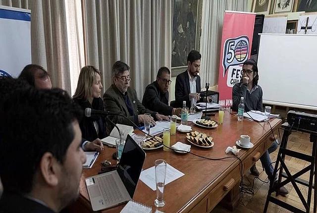 Comandos presidenciales debatieron Propuesta Programática del Colegio de Periodistas de Chile 10/03/2017 22:00 to 01/01/1970 00:00 - Santiago Representantes de cuatro comandos presidenciales se juntaron con Claudio Avendaño, académico de la USACH y representante del colectivo Democracia y Comunicación (DEMCO), y colegas, dirigentes y dirigentas de la mesa directiva del Colegio de Periodistas Foto: Héctor Vergara Hasta la Biblioteca del Círculo de Periodistas de Santiago llegaron el miércoles 04 de octubre representantes de cuatro de los ocho comandos de los candidatos a la Presidencia de la República, para debatir sobre comunicaciones y la Propuesta Programática 2017-2018 del Colegio de Periodistas de Chile. La actividad, que encabezaron los presidentes nacional y metropolitano del Colegio, Luis Schwaner y Ethel Pliscoff, respectivamente, fue organizada por el Consejo Nacional de la orden gremial con el apoyo de la Fundación Friedrich Ebert en Chile (FES), con el propósito de conocer las posturas de quienes aspiran llegar a La Moneda en materias como la concentración mediática, el pluralismo informativo y la ética periodística. Los contenidos de la propuesta programática fueron presentados por la secretaria general del Colegio, Rocío Alorda, para luego seguir con el foro donde participaron Alejandro Führer, por el comando de Alejandro Guillier; Daniel Pinto, quien representó la candidatura de Beatriz Sánchez; Cristián Urzúa, perteneciente al equipo que respalda al abanderado José Antonio Kast; y Freddy Jelvez, quien habló a nombre del candidato Alejandro Navarro. También asistieron la representante de la FES Chile, Simone Reperger; y Claudio Avendaño, académico de la USACH y representante del colectivo Democracia y Comunicación (DEMCO), además de colegas, dirigentes y dirigentas de la mesa directiva del Colegio de Periodistas. Cabe señalar que la Propuesta Programática antes mencionada, aprobada por el Consejo Nacional de la orden gremial, señala, entre otras cosas, la necesidad de una Nueva Constitución aprobada por una Asamblea Constituyente y que consagre el Derecho a la Comunicación, en sus componentes de libertad de expresión y prensa y acceso a la información. El documento también propone una nueva institucionalidad para las comunicaciones mediante una ley de medios, que evite la concentración de medios en Chile, promoviendo los tres sectores de las comunicaciones, a saber medios públicos, privados y comunitarios; así como también una batería de proyectos legales, tendientes a modificar artículo 22 del Código del Trabajo y la nueva Ley de Colegios Profesionales, entre otras. Asimismo, se propone nueva institucionalidad para TVN, un proyecto que elimine las penas corporales para la radiodifusión no autorizada y todas las faltas asociadas a la libertad de expresión y prensa, y que se regule en forma equitativa el avisaje estatal en los medios de comunicación. En tanto, el documento propone cambios al Fondo de Medios, que hoy subvenciona proyectos informativos, y a la Ley que regula la TV Digital, así como la creación de la Defensoría de las Audiencias; mantener el trabajo de la Comisión de Género, que promueve la creación de contenidos informativos no sexistas; y continuar el análisis del mercado laboral de los y las periodistas, defendiendo el derecho de fijar aranceles y apoyar la organización sindical.