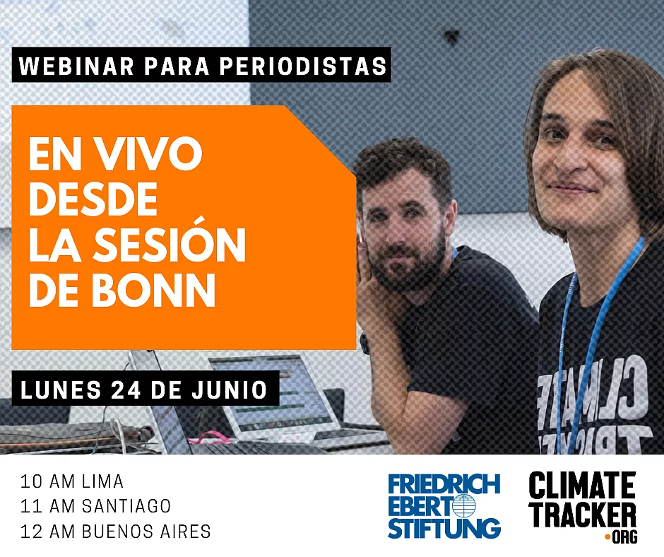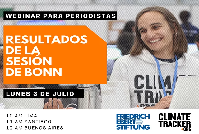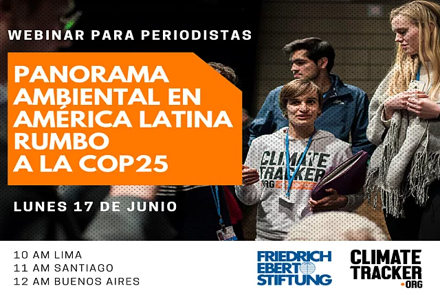 Comunicando sobre el cambio climático y COP25 - Ciclo de webinarios con Climate Tracker Webinarios con Climate Tracker, una red de más de 10,000 jóvenes periodistas y comunicadores ambientales de más de 150 países FES Chile y Climate Tracker realizaron un ciclo de formación para periodistas y comunicadorxs para fomentar la comunicación en torno a la COP25. Nos aliamos con la organización internacional Climate Tracker, una red de más de 10,000 jóvenes periodistas y comunicadores ambientales de más de 150 países, quienes hacen seguimiento al movimiento climático global y las conferencias internacionales relacionadas. Con ellxs y en línea con su misión queremos empoderar a periodistas y comunicadorxs para influenciar en el discurso sobre cambio climático en Chile. El ciclo de formación consistió de tres webinarios que quedaron grabados en YouTube: 17 de junio | 11:00hrs: Webinario sobre el panorama ambiental en América Latina rumbo a la COP25 Puedes verlo acá en YouTube. 24 de junio | 11:00hrs: Webinario desde la Intersession en Bonn, Alemania sobre la estructura de las negociaciones climáticas Puedes verlo en dos partes en YouTube: Parte 1 Parte 2 3 de julio | 11:00hrs: Webinario sobre las conclusiones de la Conferencia de Cambio Climático/Intersession en Bonn Puedes verlo en YouTube acá.