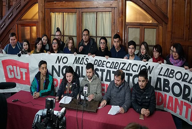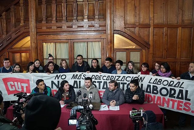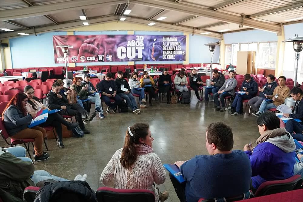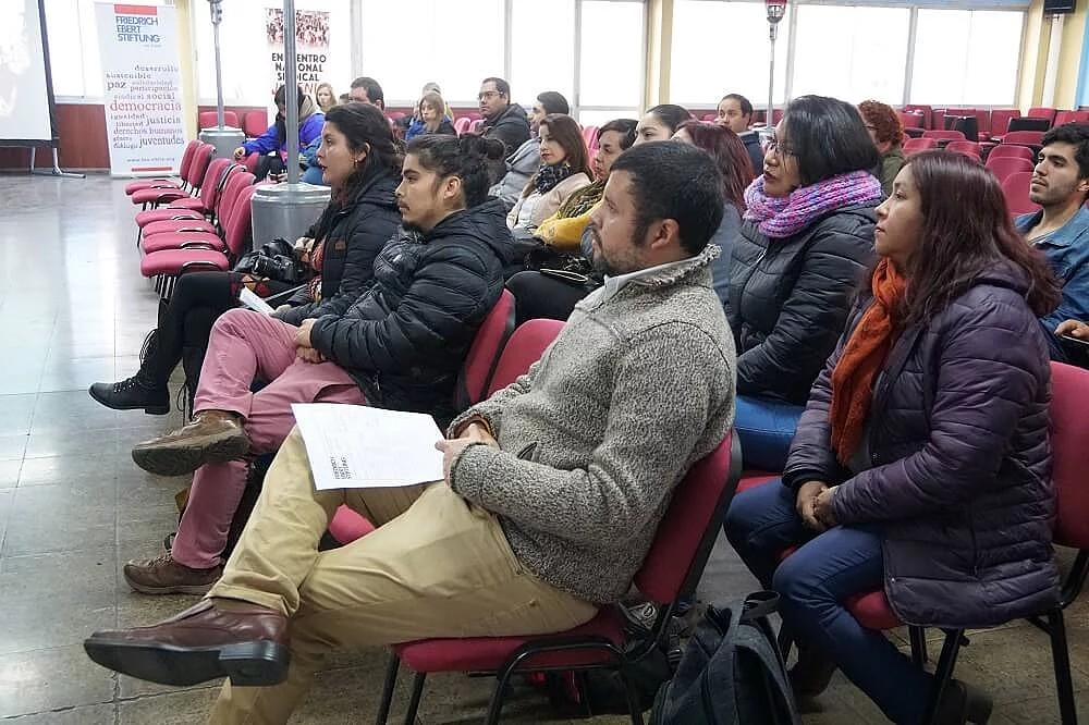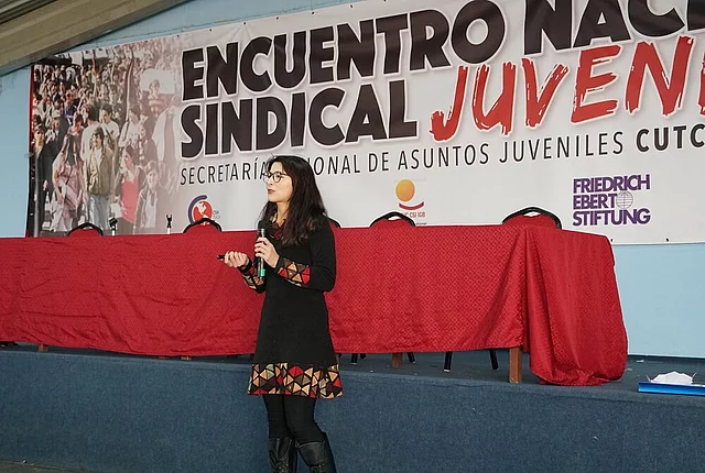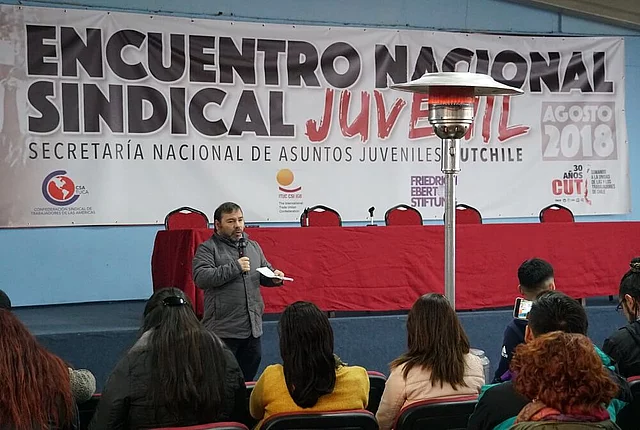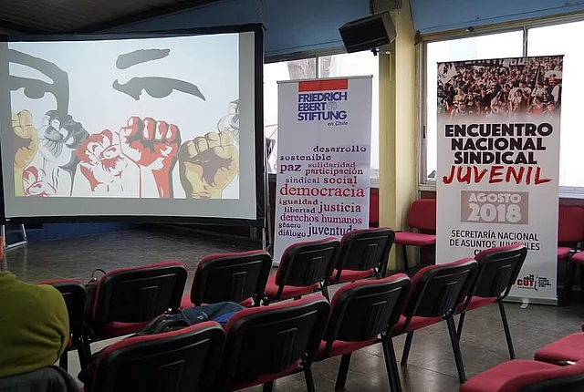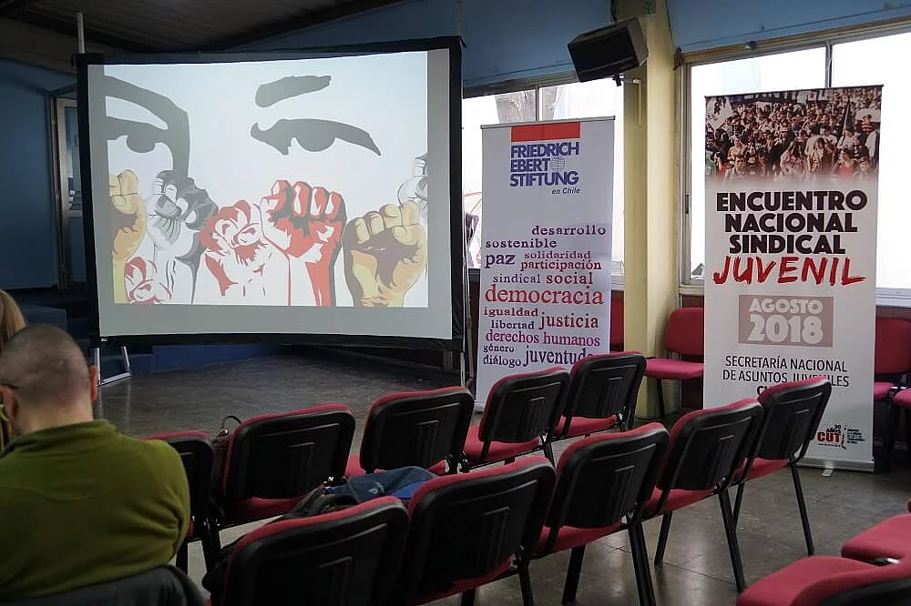 Encuentro Nacional Sindical Juvenil CUT 08/02/2018 22:00 to 08/03/2018 22:00 - CUT Chile, Santiago, Chile Terminexport im ICS-Format FES Chile apoya Encuentro de la SEJUCUT con dirigentes jóvenes de todo Chile El 3 y 4 de agosto tuvo lugar el Encuentro Nacional Sindical Juvenil. Más de 30 dirigentes y dirigentas jóvenes de sindicatos de todo Chile se juntaron en la central de la CUT Chile para intercambiar sus experiencias y organizar una coordinación y cooperación más estrecha hacia el futuro. El encuentro fue organizado por Walter Cubillos, Javiera Parada y Aymara Salamanca de la SEJUCUT (Secretaría de Asuntos Juveniles de la CUT) y apoyado por la Fundación Friedrich Ebert (FES Chile). Inició con una introducción por Aymara Salamanca respecto a los desarrollos frente al proyecto de ley del gobierno para la implementación de un Estatuto Laboral para Jóvenes Estudiantes. Subrayó el rechazo de este proyecto por parte de la SEJUCUT y la CUT Chile y las diferentes acciones que se habían realizado para visibilizar este rechazo e insertar el tema en el discurso público. Después de unas palabras de bienvenida por parte de Bárbara Figueroa, Presidenta de la CUT Chile, y Sarah Herold desde la FES Chile, l@s asistentes pasaron a un punto de prensa sobre el Estatuto Laboral Joven en lo cual también participó el diputado Boris Barrera. Créditos para las fotografías: FES Chile Galería