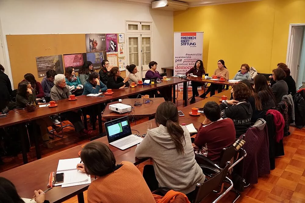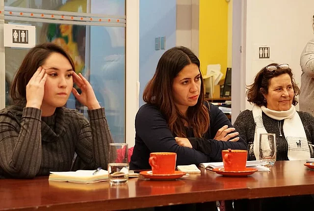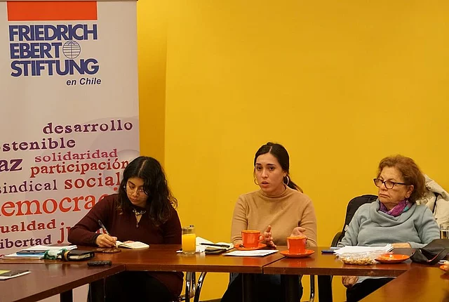 Entre segunda y tercera ola ¿seguimos en la misma lucha? 07/17/2018 22:00 to 01/01/1970 00:00 - FES Chile En esta sesión de la Mesa Feminista FES, Virginia Guzmán y Araceli Farías impulsaron la discusión sobre los cambios y continuidades entre la ola feminista de los 80 y hoy en día Una enriquecedora jornada se vivió el pasado 18 de julio en las dependencias de la Fundación FES, al alero de la Mesa Feminista de dicho espacio. Mujeres de diversos mundos, intereses y generaciones se reunieron para conversar sobre la nueva ola feminista y sus contrapuntos con anteriores movimientos que reivindican la lucha por la igualdad de género. Para motivar la discusión, estuvieron presentes como expositoras Virginia Guzmán, del Centro de Estudios de la Mujer, y Araceli Farías, Vicepresidenta de la Federación de Estudiantes de la UC durante este año, quienes pudieron contar sobre sus experiencias y el análisis que hacen a partir de cada una de ellas. En primera instancia, Virginia comenta que las olas feministas, independiente de su época, se plantean en contra de la exclusión de las mujeres, apuntando a modificar las estructuras societales basadas en lo anterior. Considerando su experiencia desde el ala del movimiento feminista que se gestó en la década de los 80 en Chile, durante la dictadura militar las mujeres se organizaron bajo la lógica de redes, sobre todo en sectores populares, además de mantener el interés por generar conocimiento que salga del modelo androcentrista predominante hasta ese entonces. Mencionó, también, que “la idea del privilegio masculino cambia según el contexto”, agregando que las mujeres de su época “tuvieron la capacidad de generar cambios desde una posición de inferioridad.” Luego, en la segunda intervención, Araceli plantea que los últimos diez años “fueron el caldo de cultivo en el mundo estudiantil para la explosión de este año”, llamada la nueva “ola feminista” en Chile. Durante todo ese tiempo, menciona, “se intentó posicionar la lucha feminista, pero no se reconocía el estatus de doble precarización de las mujeres.” La evidente masculinización de los espacios políticos en las universidades, sumado al impacto de las campañas y discursos en la cultura pop a partir de la develación de muchos casos de violencia contra las mujeres, empujó el levantamiento de las tomas en muchas universidades del país. Al hablar de patriarcado, es difícil poner rostro al enemigo. Sin embargo, Araceli considera que “el movimiento feminista toca tu identidad, tu dignidad y eso es lo que te mueve.” A pesar de lo anterior, la forma en que impacta en cada mujer se entrecruza con los privilegios que posee, en tanto el feminismo es visto desde una perspectiva de clase: “mientras más pobre, más te pega la violencia de género.” Por lo tanto, es necesario “construir desde la diferencia” y “aprender a construir en red”. Finalmente, ella percibe que el cambio cultural está llegando antes que el cambio institucional, por lo que puede ver a su alrededor. Quedamos a la espera de la apertura de las instituciones a él. Las reacciones de las participantes de la Mesa no se hicieron esperar, poniendo énfasis en la importancia de hacer cotidiana la conversación sobre feminismo, con un lenguaje simple, no sólo en espacios universitarios, sino a partir de un discurso cercano que llegue a los territorios. En la misma línea, la transversalidad del discurso tiene que basarse en la diferencia, puesto que las mujeres no son todas iguales, ni viven de la misma forma: ese es el potencial de este movimiento, la diversidad que enriquece su actuar. La unión entre la estructura patriarcal y la neoliberal sólo favorece la permanencia del machismo tanto en lo institucional, como en lo cultural. Por lo tanto, se hace necesario discutir y generar una propuesta desde el feminismo que logre dar respuesta a la sociedad y el sistema democrático que queremos plantear para el futuro. Un futuro con igualdad y justicia de género. Créditos para todas las fotografías: Sarah Herold/FES Chile Galería