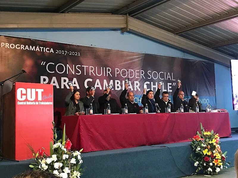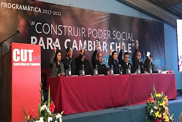 Lanzamiento de la Plataforma Programática 2017-2021 de la CUT con candidatos presidenciales progresistas 10/04/2017 22:00 to 01/01/1970 00:00 - CUT, Santiago La FES participa en presentación de resultados de Encuentros Programáticos Territoriales (EPT) Foto: FES El 5 de octubre de este año, la representante de la Fundación Friedrich Ebert (FES) en Chile, Simone Reperger, y la encargada del ámbito sindical de la FES, Arlette Gay, tuvieron el agrado de participar en el lanzamiento de la Plataforma Programática de la Central Unitaria de Trabajadores (CUT). El lanzamiento tuvo lugar en la sede central de la CUT, en marco del Consejo Directivo Nacional Ampliado (CDNA) y coincidió con la conmemoración del 29° aniversario del triunfo del NO en el Plebiscito Nacional en 1988, y que puso fin a la dictadura militar en el país. En la actividad participaron más de 350 dirigentes/as y representantes de más de 180 organizaciones sindicales de todo el país, El CDNA además contó con la presencia y participación de los/as candidatos/as presidenciales Carolina Goic (DC), Marco Enríquez Ominami (PRO), Beatriz Sánchez (FA), Alejandro Guillier (Independiente) y Alejandro Navarro (PAIS), quienes entregaron sus opiniones y programas relacionados con el mundo del trabajo a propósito de la “Plataforma Programática 2017-2021: Construir Poder Social para Cambiar Chile” escrito por CUT. La FES Chile se alegra de haber podido contribuir a esta publicación con apoyo técnico y en contenidos. La jornada contó con un vídeo resumen de las actividades y las conclusiones de los cinco “Encuentros Programáticos Territoriales” (EPT) realizados a lo largo del país entre el 3 de agosto y 1° de septiembre y que forman la base de la elaboración de la Plataforma Programática. El objetivo de los encuentros fue sociabilizar con las bases territoriales de la CUT y construir descentralizadamente, los contenidos de los temas de fondo como el avance de la Autorreforma Sindical, implementación de la Reforma Laboral y propuestas programáticas de la Central, en el contexto de las candidaturas presidenciales, parlamentarias y CORE para las elecciones del 19 de noviembre. This video is provided on YouTube. To look at it, you have to agree to our marketing cookies. Further information can be found in the detailed Data protection information. Accept Marketing Cookies and load video