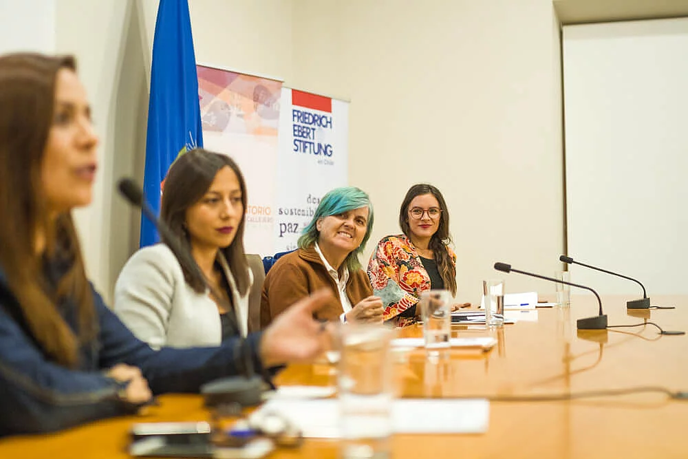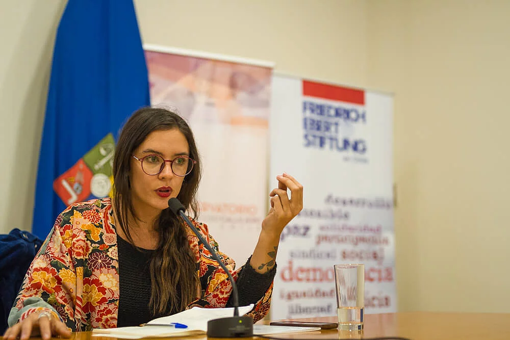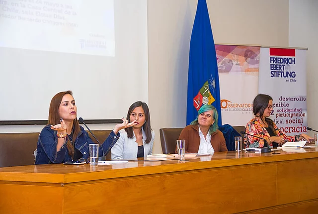 Lanzamiento: "Nuevas voces del feminismo chileno" 05/23/2018 22:00 to 01/01/1970 00:00 - Casa Central, Universidad de Chile Juntos con el Observatorio contra el Acoso Callejero (OCAC) la FES presenta la publicación en evento con Camila Vallejo, Kena Lorenzini y Natalia Valdebenito El 24 de mayo, la Fundación Friedrich Ebert (FES) junto al Observatorio contra el Acoso Callejero (OCAC) Chile, realizaron el foro y presentación de "Nuevas voces del feminismo chileno", publicación que sintetiza las conclusiones del primer Encuentro de Jóvenes Feministas realizado en Chile. Presentó una instancia de reflexión en torno al rol e importancia de las y los jóvenes como agentes claves ante las nuevas problematizaciones de las violencias de género. Conversaron sobre el tema: - Camila Vallejo, diputada (PC) y firmante del proyecto de ley Respeto Callejero.- Kena Lorenzini, psicóloga, fotógrafa y activista feminista.- Natalia Valdebenito, comediante y feminista. íGracias a todxs lxs que asistieron! Créditos de las fotografías: FES Chile Galería