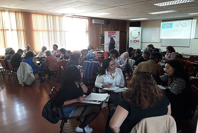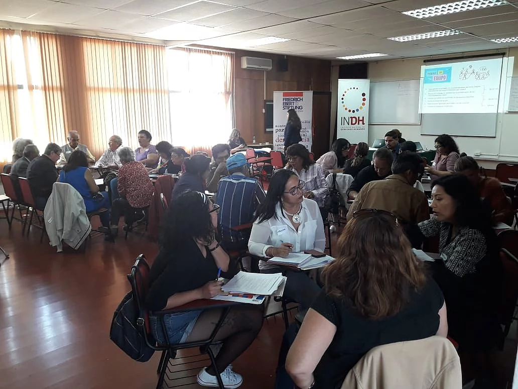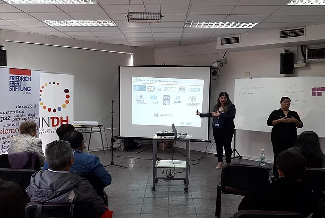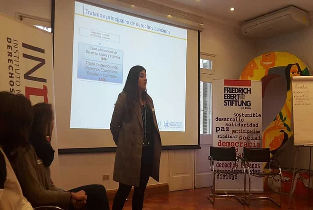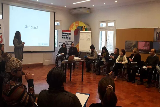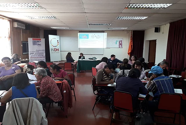 Participación de la sociedad civil en el EPU (Examen Periódico Universal) En conjunto con el ACNUDH y el INDH, la FES apoya a la sociedad civil para incidir en el EPU de las Naciones Unidas Observaciones de la sociedad civil a respuesta de Chile a EPU 2019 287 KB Foto: UPR Info El proceso del EPU (Examen Periódico Universal) ya se encuentra en la etapa final. Después de las pre-sesiones en diciembre 2018, el martes 22 de enero se presentó la evaluación del cumplimiento de los derechos humanos en Chile. Las recomendaciones serán adoptadas oficialmente el 4 de julio durante el 41° período de sesiones del Consejo de Derechos Humanos. Acá puedes consultar las observaciones de la sociedad civil al respecto. En 2018, la sociedad civil chilena entregó un total de 67 informes a las Naciones Unidas para informar sobre el estado de los derechos humanos en su país. En comparación con la última evaluación en 2014, el número de informes entregados subió sustancialmente, de solo 27 a 67. En el proceso anterior, participaron exclusivamente organizaciones con sede en Santiago y varios de los informes fueron realizados por organizaciones de la sociedad civil internacional y no nacional. En 2018 hubo una participación más amplia y se sumaron varias organizaciones que trabajan en diferentes regiones de Chile. Entre los informes, varios se elaboraron en coaliciones formadas por organizaciones que trabajan el mismo tema, dando más fuerza a los comentarios y propuestas hechas. Abajo les dejamos más información respecto al proceso y como la FES Chile juntos con el ACNUDH (Alto Comisionado de las Naciones Unidas para los Derechos Humanos) y el INDH (Instituto Nacional de Derechos Humanos) lo acompañaron. Más abajo puedes encontrar una selección de las recomendaciones que Chile recibió en el EPU 2014 y unas fotografías de los talleres en regiones. “El Estado tiene la obligación de proteger nuestros derechos humanos” Desde abril 2018, estaban teniendo lugar las capacitaciones sobre el Examen Periódico Universal (EPU) de las Naciones Unidas (ONU) organizada por la FES Chile y el Alto Comisionado de las Naciones Unidas para los Derechos Humanos (ACNUDH) en cooperación con el Instituto Nacional de los Derechos Humanos (INDH). Después de cinco talleres con más de 200 participantes en distintas ciudades del país como Temuco, Valdivia, Iquique, Arica y Valparaíso, el martes 5 de junio se realizó una capacitación sobre el EPU en la sede de la FES en Santiago. En dicha instancia se facilitaron conocimientos y herramientas sobre el proceso EPU en general y los espacios para la participación de la sociedad civil, los pueblos indígenas y afrodescendientes. El taller inició con una capacitación sobre el sistema universal de derechos humanos y cómo el EPU forma parte de los procedimientos de cumplimiento en derechos humanos del sistema. El EPU es un mecanismo del Consejo de los Derechos Humanos de la ONU. El objetivo del EPU es la evaluación de la implementación de los derechos humanos en los 193 países miembros de la ONU, para esto, el mecanismo cuenta con participación integral de la sociedad civil. Chile hoy se encuentra en el tercer ciclo del EPU. En enero 2019 y luego de una revisión exhaustiva por parte de los 47 países miembros del Consejo de Derechos Humanos, Chile recibió recomendaciones para mejorar la situación de DDHH, emitidas por varios países miembro de la Asamblea General de la ONU. Las capacitaciones informaron sobre cómo la sociedad civil se puede involucrar antes, durante y después del examen. La sociedad civil, los pueblos indígenas y afrodescendientes pudieron elaborar y entregar informes con sus visiones de la situación de DDHH en Chile. Su participación en el proceso EPU es tan esencial porque “Chile no puede solo estar representado por el estado en frente de la ONU”. En la examinación se presentan tres informes – uno del ACNUDH, uno del Estado y uno de la sociedad civil. Los países dan sus recomendaciones en base de estos informes a los cuáles el estado chileno tiene que responder. Luego de una presentación sobre el rol que cumple el INDH en el proceso, lxs representantes de varias organizaciones de la sociedad civil, los pueblos indígenas y afrodescendientes revisaron las recomendaciones del último ciclo del EPU para Chile y discutieron en grupos sobre la implementación de los DDHH en Chile en los siguientes temas: pueblos indígenas; mujeres y género; desarrollo y medio ambiente; migración; NNA; LGBTI; personas con discapacidad; uso de fuerza y tortura; verdad, justicia y reparación y cárceles. Luego se presentaron los comentarios e ideas para elaborar recomendaciones por este ciclo del EPU. Créditos para todas las fotografías: FES Chile Documentos clave Mini-Manual EPU Lineamientos ACNUDH Examen periódico universal La Oficina del Alto Comisionado de los Derechos Humanos (ACNUDH) y la Fundación Friedrich Ebert (FES Chile), con la colaboración del Instituto Nacional de Derechos Humanos (INDH), organizaron jornadas de trabajo sobre el Examen Periódico Universal (EPU) en varias ciudades de Chile. Las sesiones tenían como objetivo dar a conocer el mecanismo, y los lineamientos que existen para que la sociedad civil pueda enviar insumos al mismo. ¿Qué es el EPU? Es una oportunidad para mejorar el desempeño de los países en el cumplimiento de sus obligaciones en materia de derechos humanos. El examen revisa la implementación de dichas obligaciones en todos los países y abre la oportunidad para que exista un compromiso político firme de los países examinados con respecto a recomendaciones que se les hacen durante dicho examen. ¿Qué rol tiene la sociedad civil en el EPU? Dentro del proceso EPU existe un espacio para que la sociedad civil y las partes interesadas presenten sus consideraciones, recomendaciones y análisis, como insumo adicional al Informe Oficial que presentan los Estados. La FES apoya a la sociedad ci