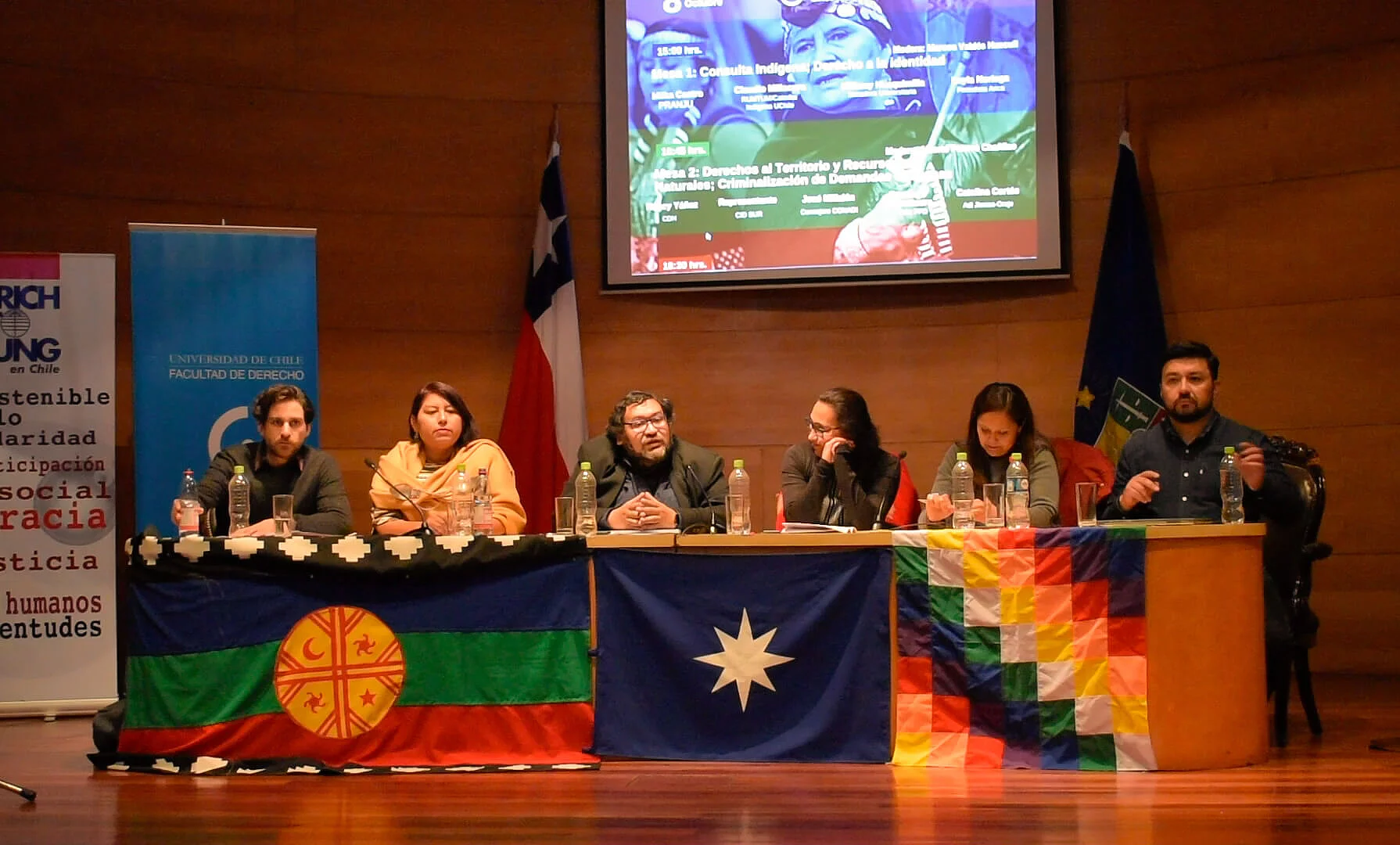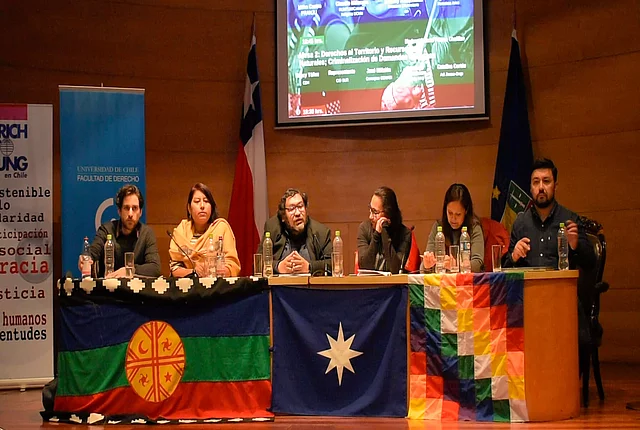 Seminario: El Convenio N° 169 de la OIT y los Derechos Colectivos de los Pueblos Indígenas 10/07/2018 22:00 to 01/01/1970 00:00 - Aula Magna, Facultad de Derecho, Santiago, Chile Conmemorando 10 Años desde su Ratificación Este año se cumplen 10 años desde la ratificación del Convenio 169 de la Organización del Trabajo de parte del Estado de Chile, el cual ha sido una herramienta importante para el reconocimiento de los pueblos indígenas, de su lucha y del derecho a consulta, al cual está obligado el Estado en caso de tomar medidas administrativas o legislativas que afecten directamente a los pueblos indígenas. En este contexto, y en el de la reciente presentación del Plan Araucanía de parte del gobierno de Sebastián Piñera, el lunes 8 de octubre se abrió un espacio para un debate entre intelectuales y dirigentes indígenas y no indígenas, sobre la consulta indígena, el derecho al territorio y los recursos naturales y participación política y autonomía. Revisa el registro realizado por El Desconcierto acá. Organizan: Centro Estudiantes de Derecho, Centro de Derechos Humanos, Facultad de Derecho, Universidad de Chile y Programa de Antropología Jurídica Facultad de Derecho Universidad de Chile. Auspicia: Fundación Friedrich Ebert (FES Chile)Patrocina: Instituto Igualdad, Fundación Por la Democracia FPD, Centro de Estudios Mapuche Rümtun, Fundación Chile 21. PROGRAMA14:30 hrs. - Bienvenida14:45 hrs. - Acto Cultural: Cantante Mapuche Daniela Millaleo15:00 hrs. - Mesa 1: Consulta Indígena; Derecho a la Identidad- Milka Castro PRANJU- Claudio Millacura RUMTUM/Cátedra Indígena UChile - Millaray Huaquimilla Vicepresidenta CED y Senadora Universitaria - Leyla Noriega Periodista Modera: Marcos Valdés Huecull16:45 hrs. - Mesa 2: Derecho al territorio y Recursos Naturales; Criminalización de Demandas Indígenas- Nancy Yáñez Centro de Derechos Humanos Facultad de Derecho- José Millalén Consejero CONADI- Alberto Pizarro Chañilao Fundación por la Democracia- Catalina Cortés Adi Jiwasa-OrajeModera: Domingo Namuncura18:30 hrs. Mesa 3: Participación Política y Autonomía - Emilia Nuyado Diputada de la República- Verónica Figueroa Huencho Académica INAP y Senadora Universitaria- Gonzalo Peña Fundación por la DemocraciaModera y Cierre: Salvador MillaleoRokin: Cocktail Mapuche Fotos: El Desconcierto
