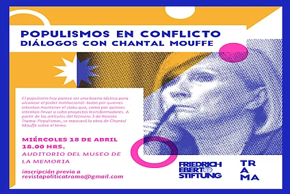 Actividades Cátedra abierta de Chantal Mouffe En el marco de su visita a Chile, apoyada por la Fundación Friedrich Ebert, la filósofa belga postmarxista, Chantal Mouffe realizó una cátedra abierta en la Universidad de Chile, invitada por el Centro de Estudios de Conflicto y Cohesión...